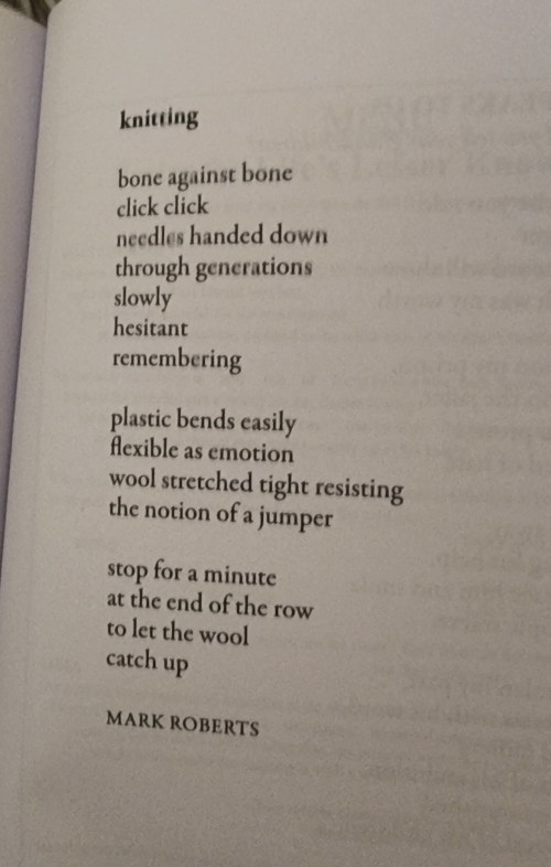 Liddy and Burke selected ‘Knitting’ for The Stony Thursday Book 50th Anniversary Edition. Knitting is a new poem, once again quite short, but a poem I have been working on for well over 5 years. It is wonderful to see it finally emerge into the light of day. I was particular pleased to have been included in this anthology, which is one of Ireland’s longest running literary publications and to be in the company of so many wonderful poets. My only regret was that my trip to Ireland this year did not coincide with the launch!